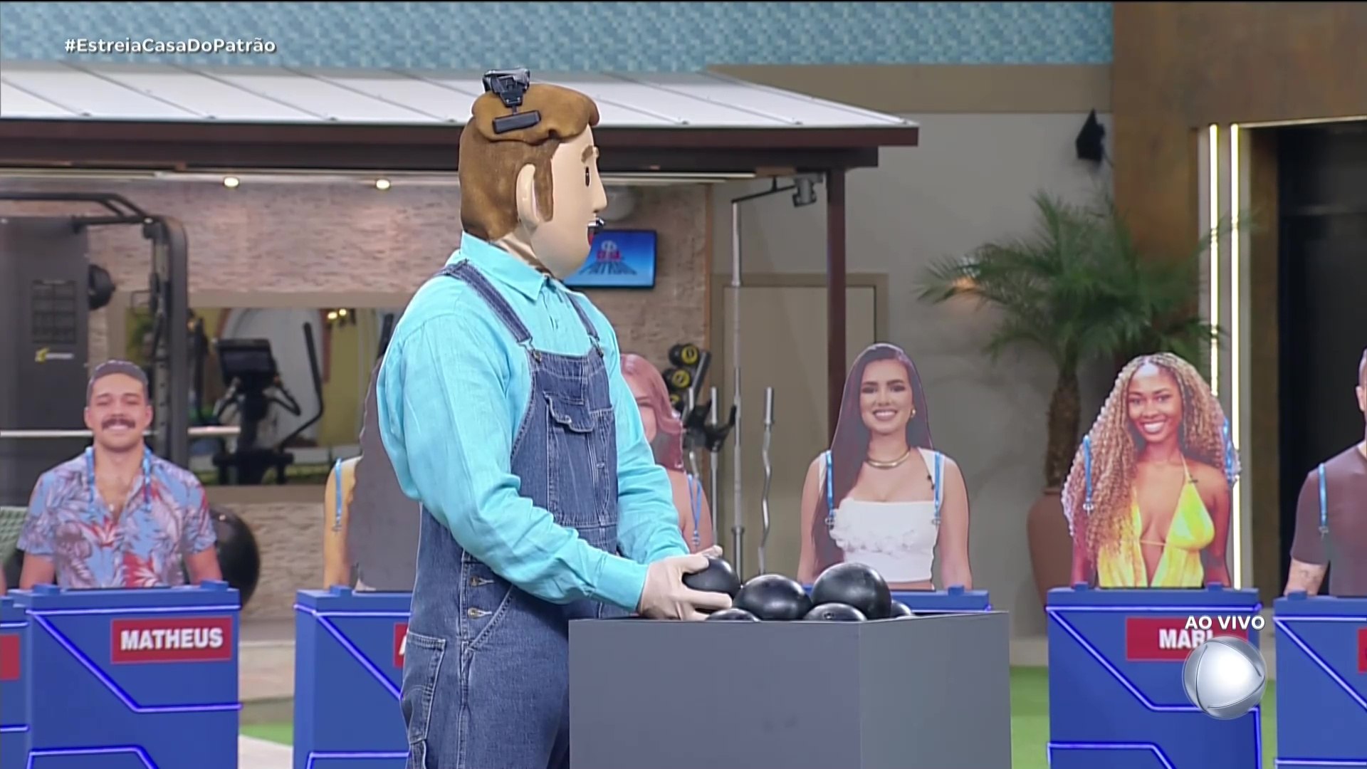 estagiarios casa do patrao ajudantes de prova boninho figurino visual uniforme produção bastidores reality leandro hassum apresentador diretor montagem prova patrao